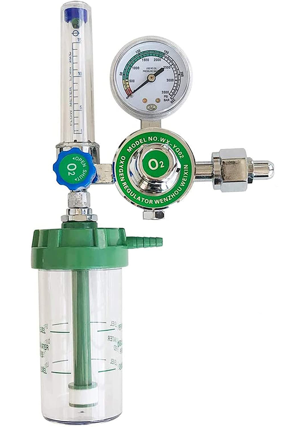 อุปกรณ์รุ่นนี้ใช้สำหรับควบคุมปริมาณออกซิเจนที่ไหลจากถังเข้าสู่เครื่องช่วยหายใจ หน้ากากออกซิเจน หรือสายต่อจมูก (Nasal Cannula) โดยมีการแสดงแรงดันในถัง และสามารถปรับอัตราการไหลได้ตามความต้องการของผู้ใช้งานหรือคำแนะนำของแพทย์