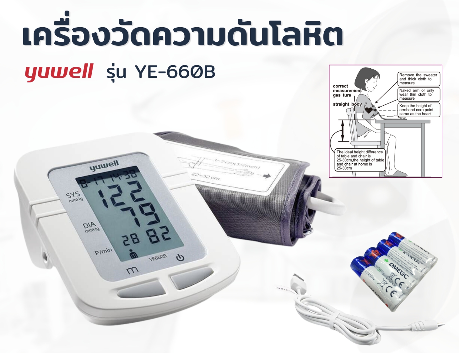 เครื่องวัดความดันอัตโนมัติ Yuwell รุ่น YE660B ประกันศูนย์ไทย 5 ปี