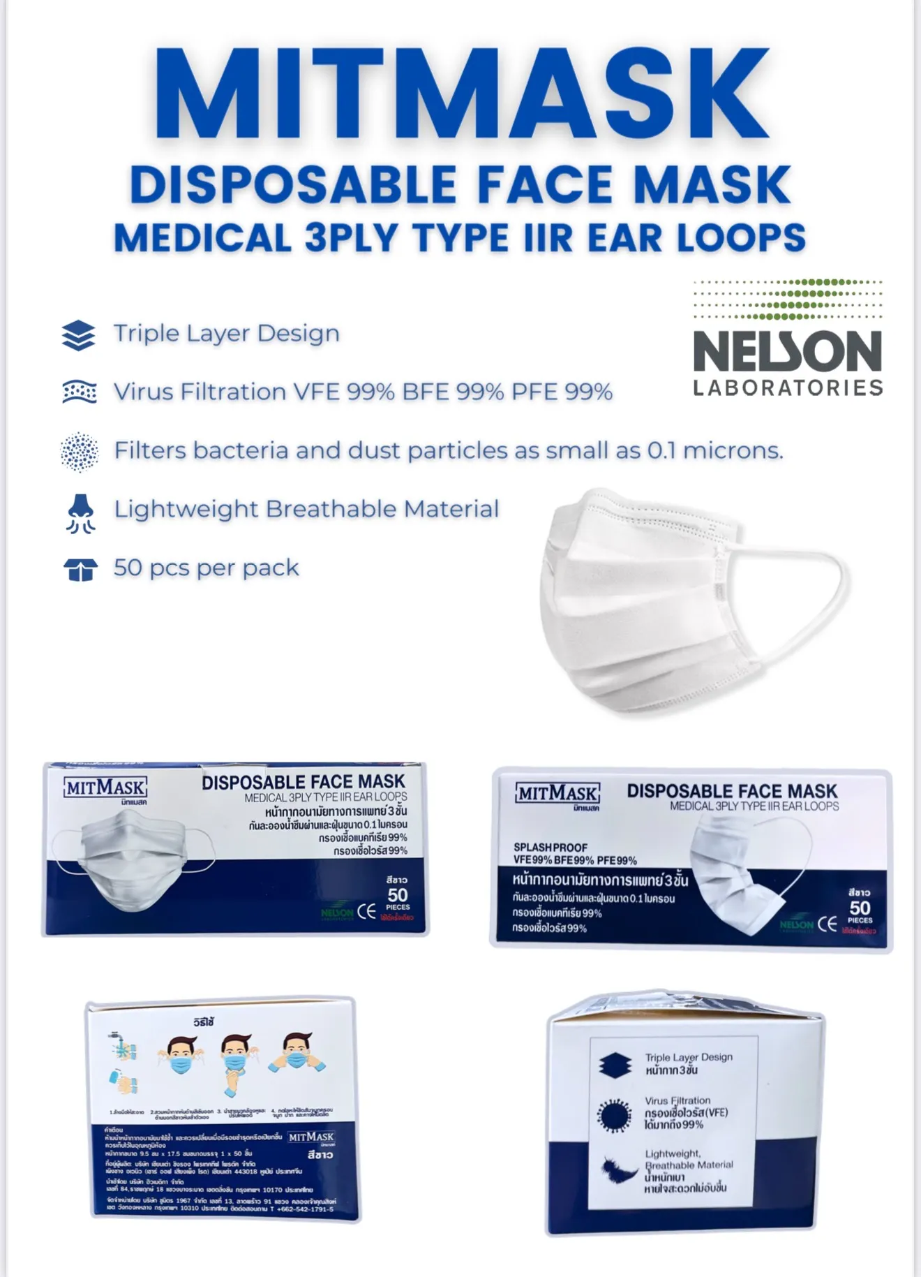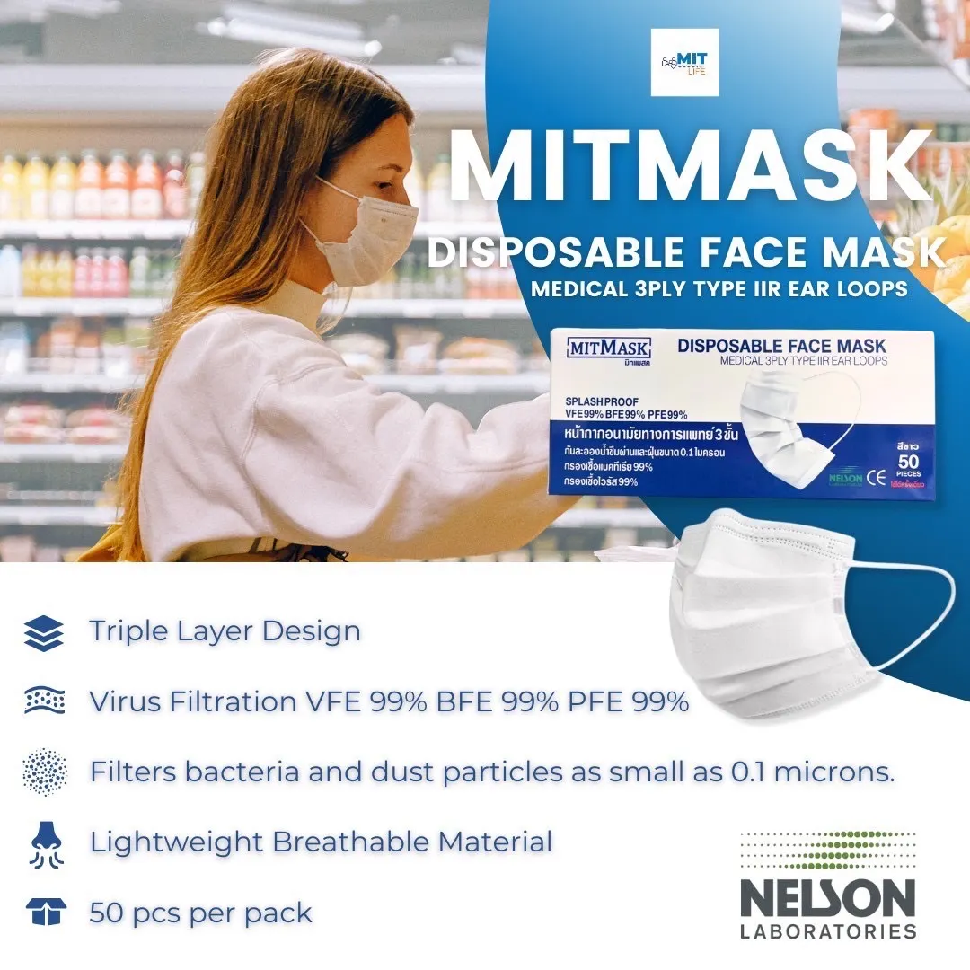 มิทมาสค์ หน้ากากอนามัยทางการแพทย์ 3ชั้น ชนิดคล้องหู / Mitmask Disposable Face Mask
